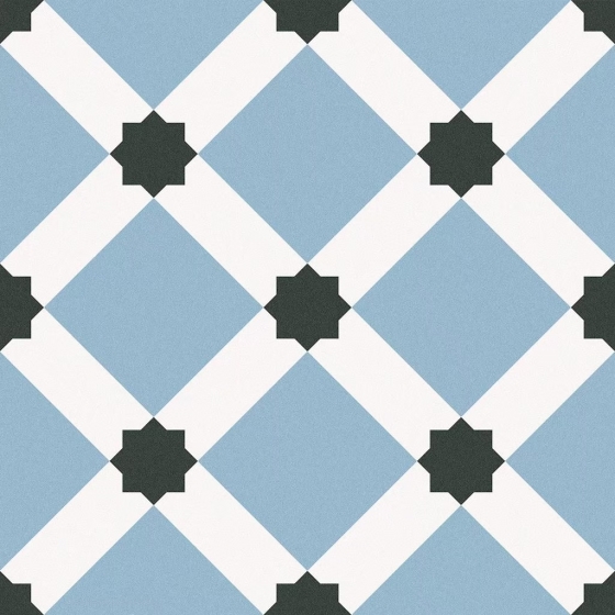 柔和的陽光與浪漫的氛圍,以微甜的粉藍帶出花磚的萬種風情,