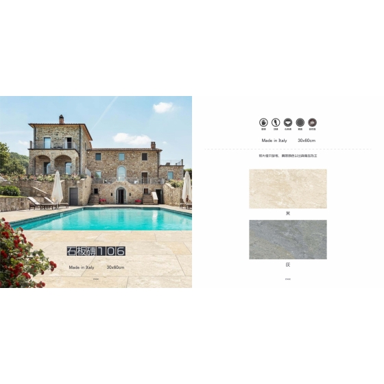 沉靜且內斂的灰色調, 優雅高貴的石材紋路, 低調的襯托其他色調, 讓您的空間配色更加時尚優雅。