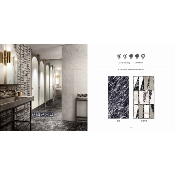 沉穩內斂的色調, 瀟灑豪邁的白色紋路, 展現自信的生活態度, 讓空間最原始的瀟灑自信更加放大。