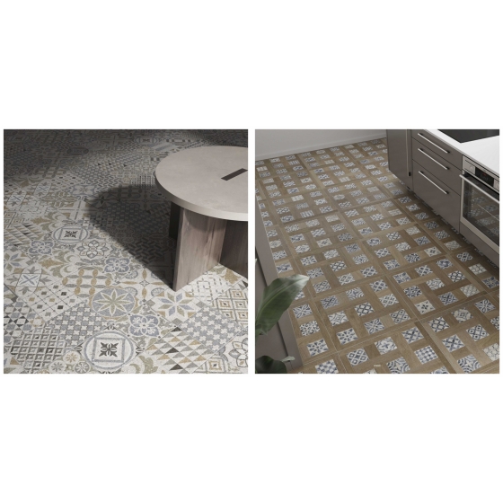 木紋與花磚的經典結合,