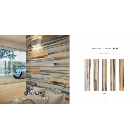 筆刷質感的特殊木紋磚,如同萬花筒般的多樣配色,