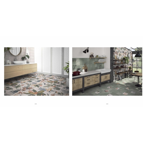 文青的花磚和低調色磚,與霧面材質做搭配,