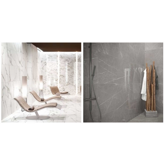 中性色調的灰色岩紋溫柔細緻加上亮面質感,