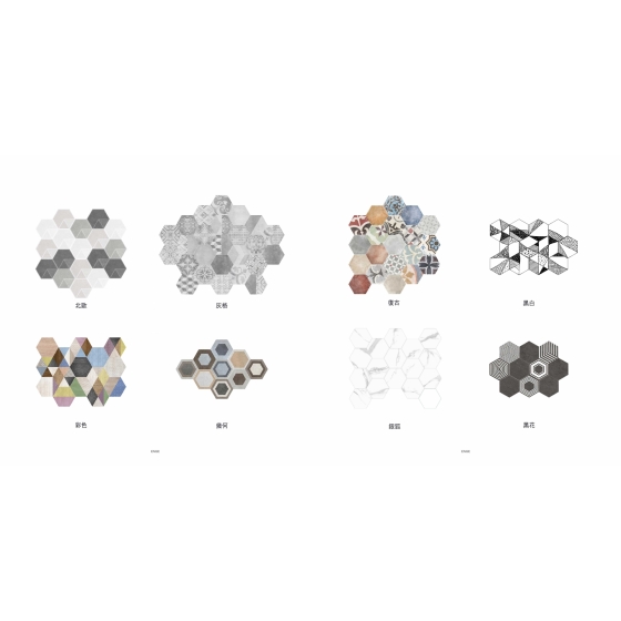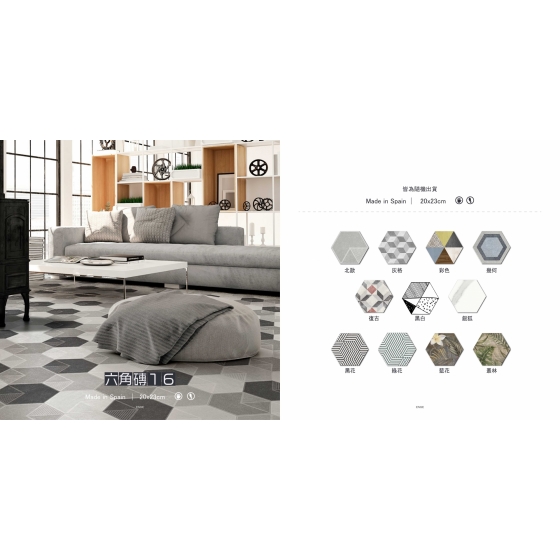 「西班牙-六角磚16」系列,擁有11種主題風格,
