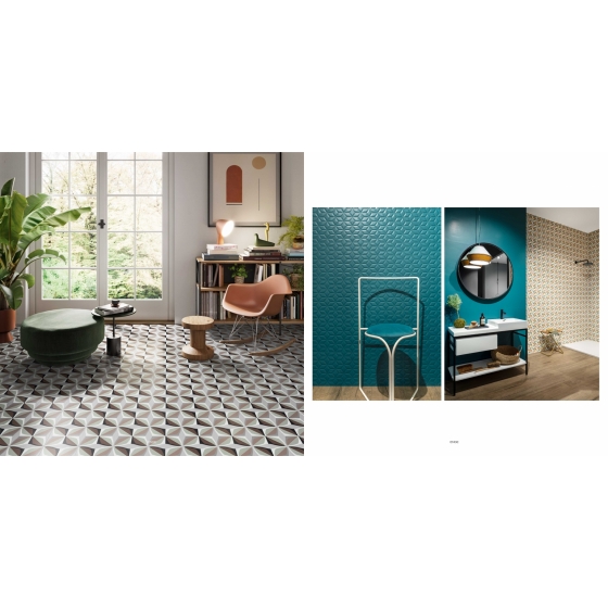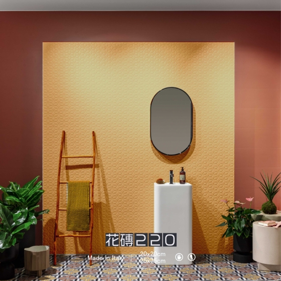將素磚、立體磚以及花磚互相搭配,