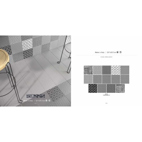 義大利那迷人的設計, 因那從過去到現在,日積月累的累積, 利用藝術中最基礎的三大元素「點、線、面」為設計原理, 設計出具有現代風格且令人著迷的黑白線條, 無論是全面積鋪或少量配搭, 都能賦予地板及牆壁整體明確的風格。 ----------------------------------------------------------------