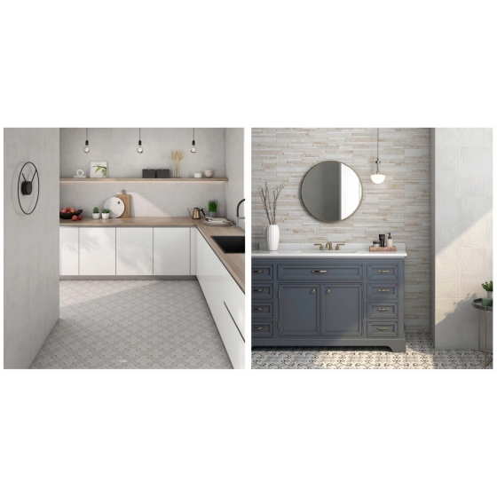 與素磚搭配的優雅花磚,