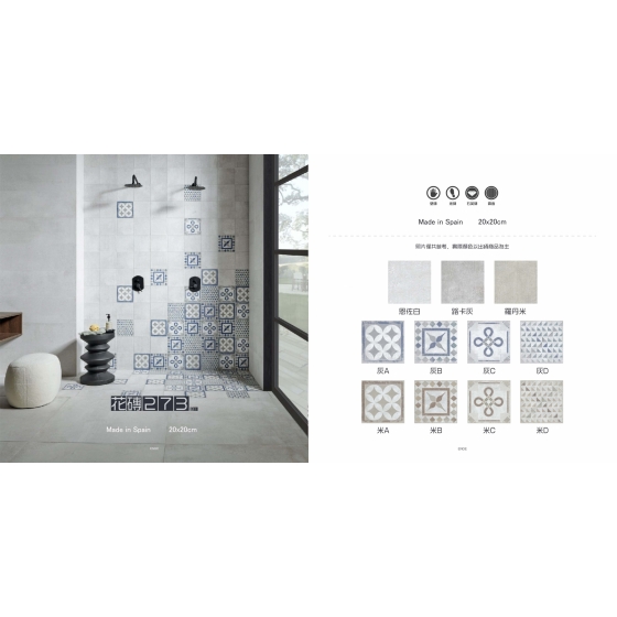 優雅內斂的色調, 仿舊復古斑駁感, 四款氣質花磚, 隨意拼貼展現前所未有的懷舊氣質, 打造您獨特的個人懷舊空間。