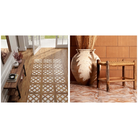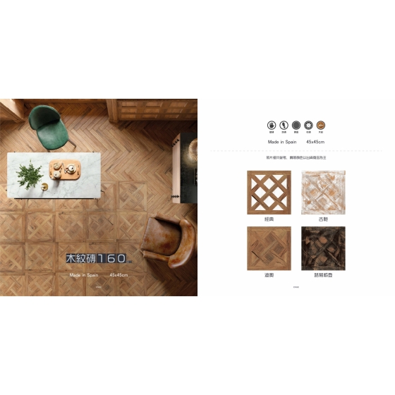 優雅舒適的木紋色調, 真實且自然的紋路, 交錯拼貼的效果, 展現獨特的優雅氣質, 打造您的特別空間。