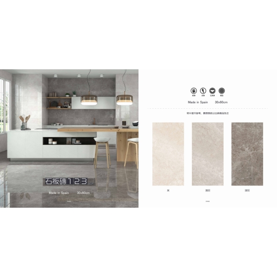 天然石材般自然紋路, 散發著粗曠自然的氣息, 經過長久歲月的魅力, 為空間刻畫出歲月的痕跡, 展現絕佳的魅力與創造力。