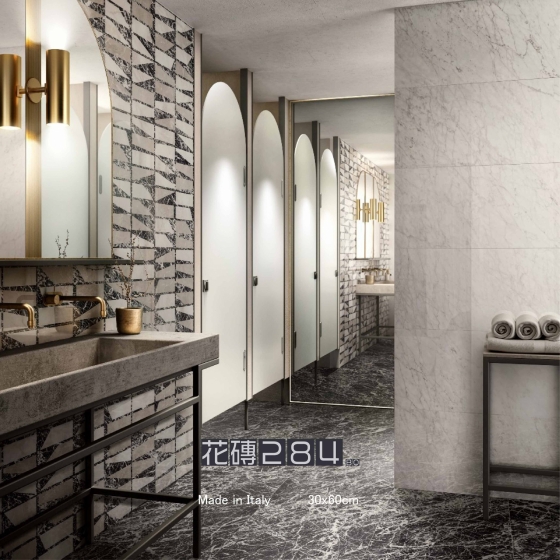 沉穩內斂的色調, 瀟灑豪邁的白色紋路, 展現自信的生活態度, 讓空間最原始的瀟灑自信更加放大。