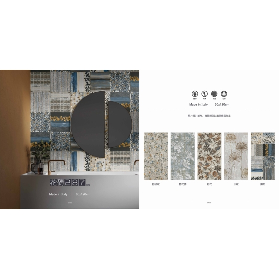 優雅復古的花磚,各種風格帶給您不同感受, 將過去相同的復古氣息穿越時空展現給您, 精緻的花紋,用心的設計, 將那份時空美好利用此系列花磚, 展現在您的空間中。