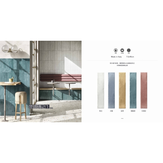 以1960年義大利傳統手工為起點, 塑造手工凹痕的歲月美感, 打造大膽且鮮豔色彩, 具有流動海洋透徹的水藍色, 如同珊瑚般優雅艷麗的色調, 展現明亮和柔和的配色。